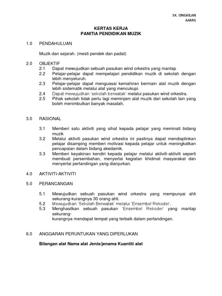 Kertas Kerja Panitia Muzik 2021 Pdf
